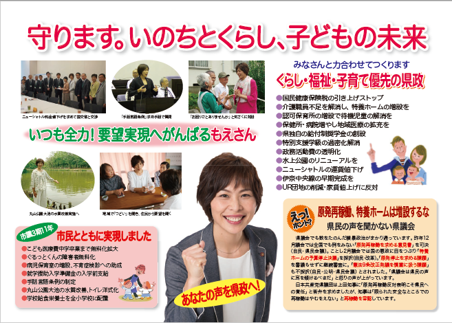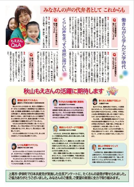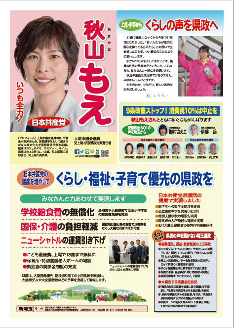 「くらしの声を県政へ」秋山もえリーフレット