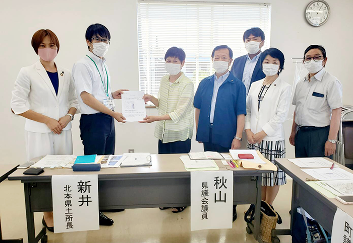 要望書を手渡す秋山県議と党上尾市議団