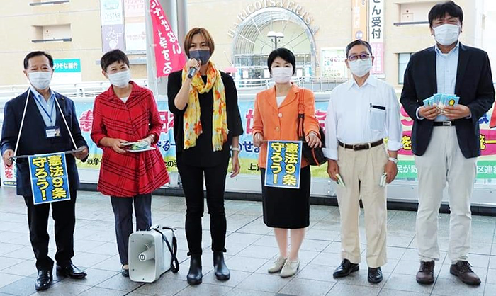 戦後76年、終戦記念日の8月15日、上尾駅東口で、憲法九条を守る上尾共同センター主催の憲法を守る宣伝署名行動に日本共産党市議団が参加しました。