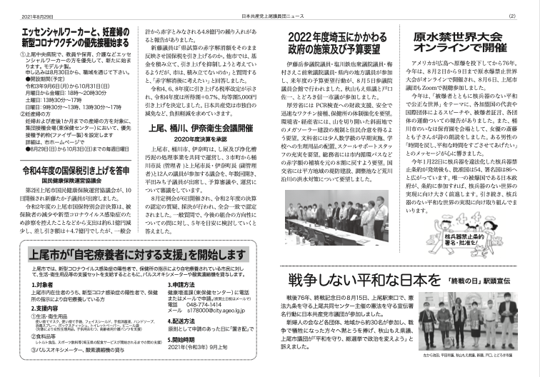 アメリカが広島へ原爆を投下してから76年。今年は、8月2日から9日まで原水爆禁止世界大会がオンラインで開催され、8月6日、上尾市議団もZoomで視聴参加しました。
