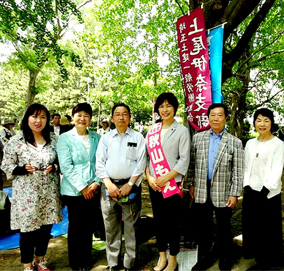 同じく5月3日、上尾駅西口で、伊藤岳党県民運動委員長が街頭演説を行い、「隠蔽、改ざんの安倍政権を退陣させよう」と訴えました。秋山もえ市議(県議予定候補)が挨拶しました。