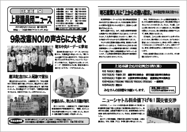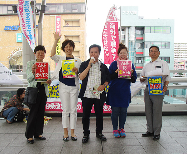 憲法記念日の5月3日、上尾駅東口で、「安倍改憲NO!3000万署名行動」が行われ、憲法を守る上尾共同センター、上尾革新懇など多数の参加で、署名を訴えました。党市議団もマイクを握り、「改憲国会発議をやめさせ、9条を守り抜こう」と呼びかけました。