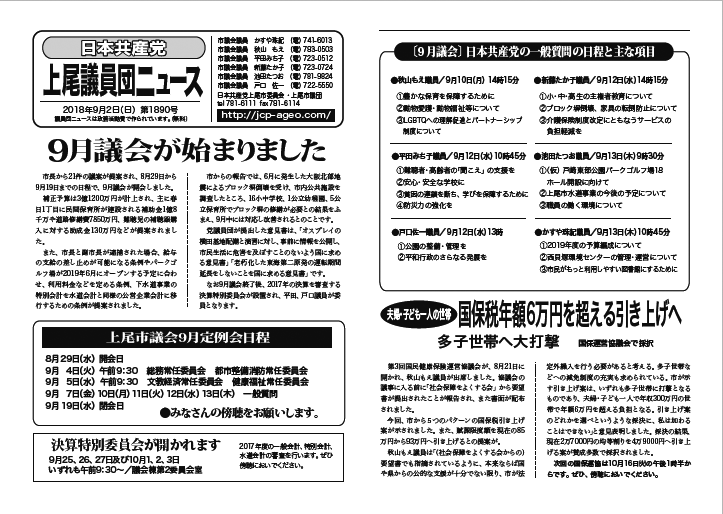 ●「日本共産党上尾議員団ニュース」第1890号(2018年9月2日付)より