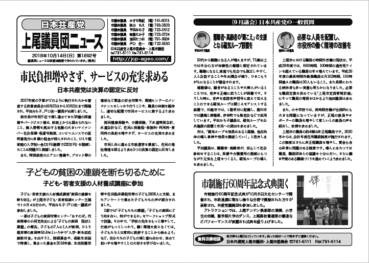 2017年度の予算がどのように執行されたかを審査する決算委員会は9月25日から10月2日まで開催され、平田みち子、戸口佐一議員が出席しました。