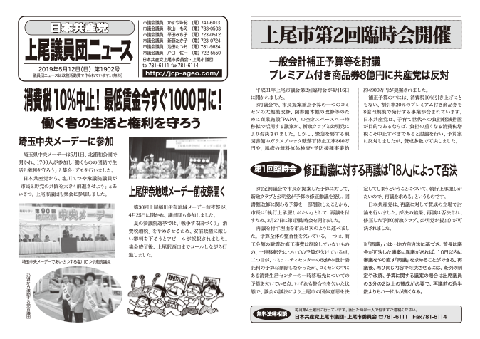 平成31年上尾市議会第2回臨時会が4月16日に開かれました。