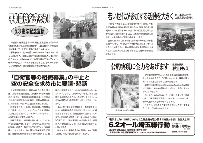 夏の参議院選挙では、「戦争する国づくり」「消費税増税」をやめさせるため、安倍政権に厳しい審判を下そうとアピールが採択されました。集会終了後、上尾駅西口までコールしながら行進しました。