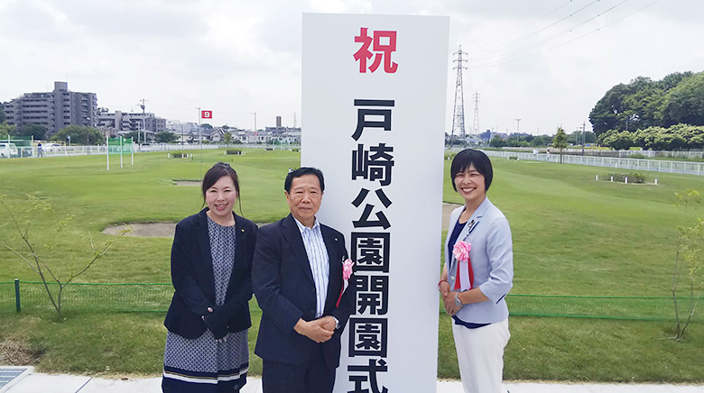 戸崎公園開園式典が6月1日に開催され、秋山もえ県議、かすや珠紀、池田たつお議員が出席しました。