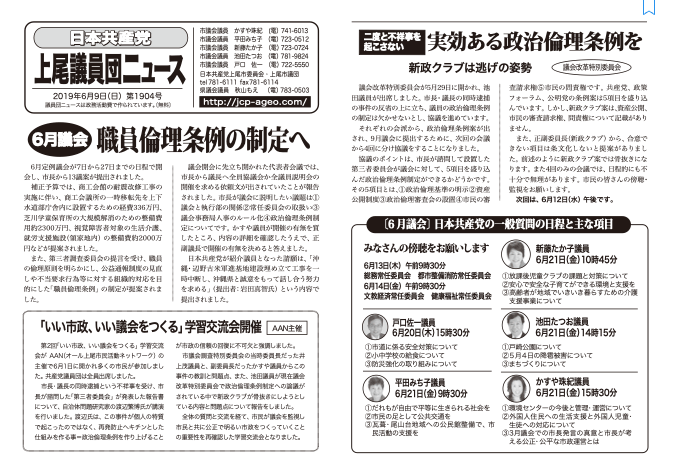 ●「日本共産党上尾議員団ニュース」第1904号(2019年6月9日付)より