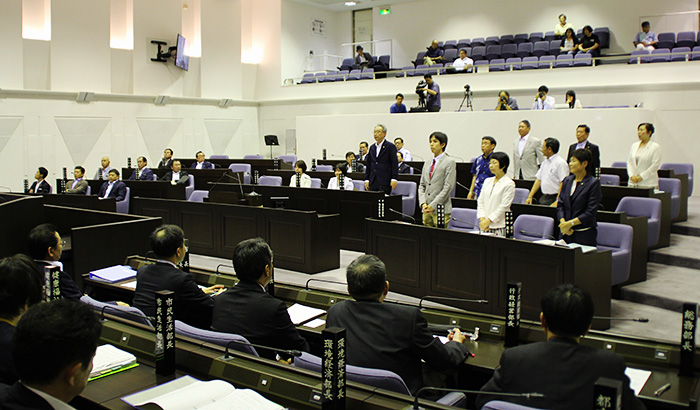 6月定例会最終日の6月27日、小林守利議長から辞職願が提出され、ただちに議長選挙が行われ、投票の結果、深山孝議員(彩の会=旧・新政クラブ)が議長に選出されました。