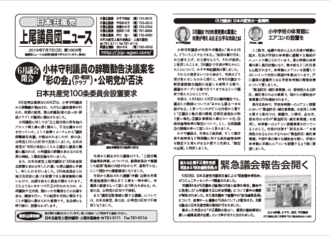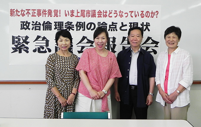 小林議員に対しては「元上尾市長の所有地のブロック塀工事に深く関与し、不当な働きかけを行っていた」として政策フォーラムから「議員辞職勧告決議」が提出されましたが、彩の会、公明党ら16人の反対で否決としました。日本共産党は「市民の負託にこたえる議会と議員の職責に鑑みれば、小林議員の辞職を求めるのは当然の帰結」と賛成討論を行いました。