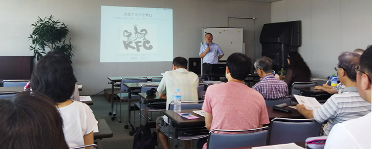 講師には神戸定住外国人支援センター理事長の金 宣吉(キムソンギル)氏より、「共生する力を育む~災害時の外国人支援から培ったやさしいツールについて~と題した講演がありました。