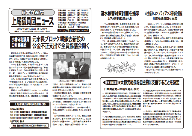 一、埼玉県議会は自民党によって、非民主的な、異常な議会運営など、横暴のかぎりが尽くされている。県議会自民党の意のままになる県知事を誕生させないことは県民の利益を守る大前提になっている。