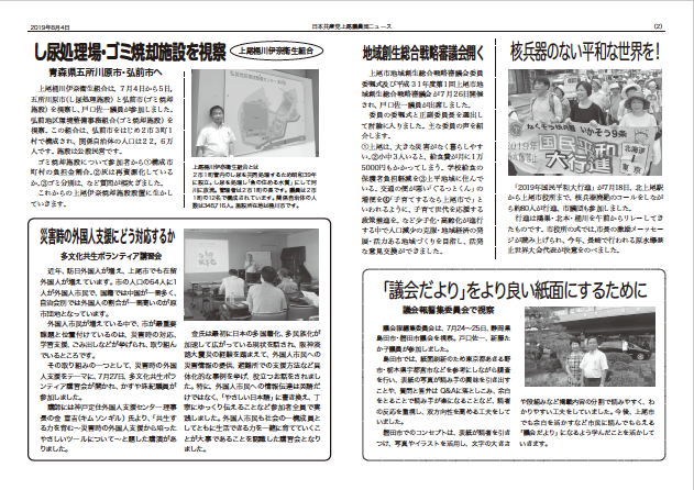 議会報編集委員会は、7月24~25日、静岡県島田市・磐田市議会を視察。戸口佐一、新藤たか子議員が参加しました。