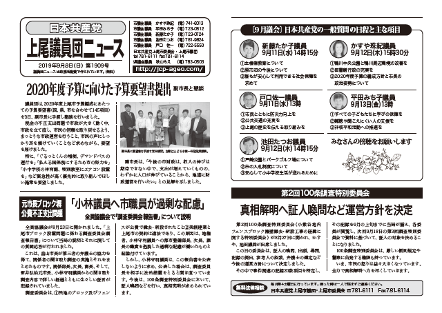 しかし、小林守利議員は、この報告書を公表しないように求め、公表した場合は、調査委員長を相手に法的措置をとると開き直っています。今後は、100条調査特別委員会において、証人喚問などを行い、真相究明が求められています。