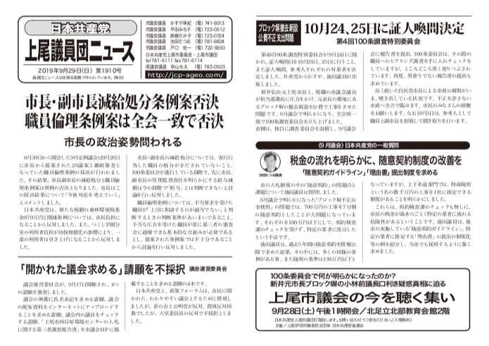長く続いた自民党市長による市政の腐敗がいま、噴き出している状況です。不正を許さない市政へ全力で臨みます。市民のみなさんの傍聴をお願いします。なお10月3日は、参考人として職員と副市長を招致して聞き取りを行います。