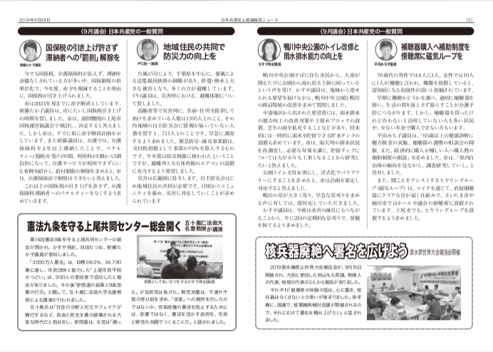 日本共産党は、新たな税制の森林環境税基金870万円と関連条例については、市民負担になることから反対しました。また、つくし学園分室の利用者負担が幼保無償化の影響により、一部の利用者は引き上げになることから反対しました。