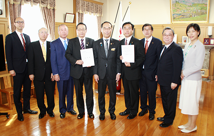 3月26日には、畠山稔市長、大室尚議長らが、大野元裕県知事と県議会に要望しました。要望には、秋山もえ県議はじめ、町田、石渡県議も同席しました。