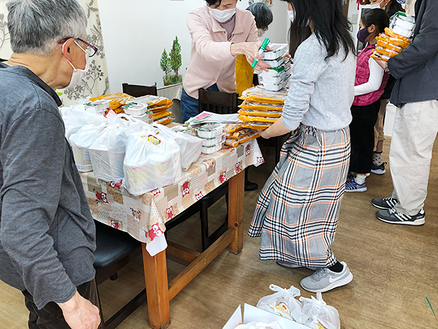 新型コロナの影響のもと、定例の子ども食堂を中止せざるを得ない状況でしたが、県の子ども食堂ネットワークから企業の支援を受け、一斉にお弁当を配る大作戦の提案があり実現したもの。