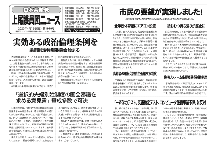 2020年度予算で、これまで市民のみなさんと要望してきたことが実現しました。