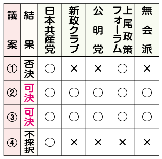 県議会で成立する条例や施策は、すべて県議の賛否により決定されていますから、県議の責任は重大です。