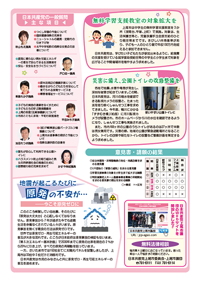 今後も、平日午後(土日、夏休みを除く)からしか開館しない原市・上平・大谷公民館図書室、たちばな・平方分館の開館時間延長、図書の買い替えや蔵書を増やすこと、インターネットがつながる環境整備の充実を求めます。