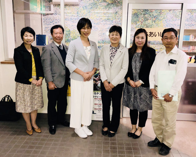 副知事と懇談する秋山もえ議員(中央)