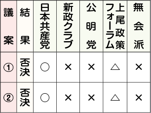 ○=賛成 ×=反対 △=一部賛成